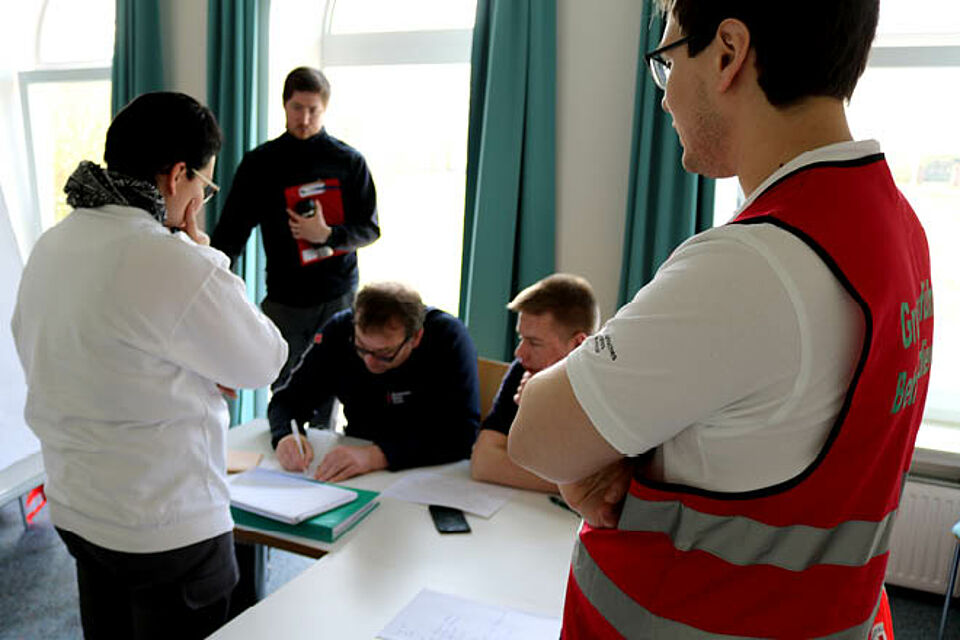 „Wir lehren das Führungssystem nach der bundesweit einheitlichen Katastrophenschutz-Dienstvorschrift 100, im Fall einer Katastrophe erleichtert das die Koordination der Einheiten“, erklärt DRK-Referent Thomas Hoppe, „hinzu kommt die Einweisung in das niedersächsische Katastrophenschutzkonzept und weitere Einsatzkonzepte. So ermöglichen wir eine möglichst umfassende Ausbildung.“