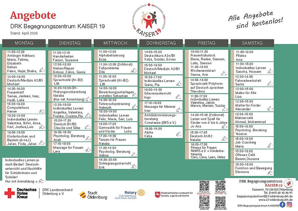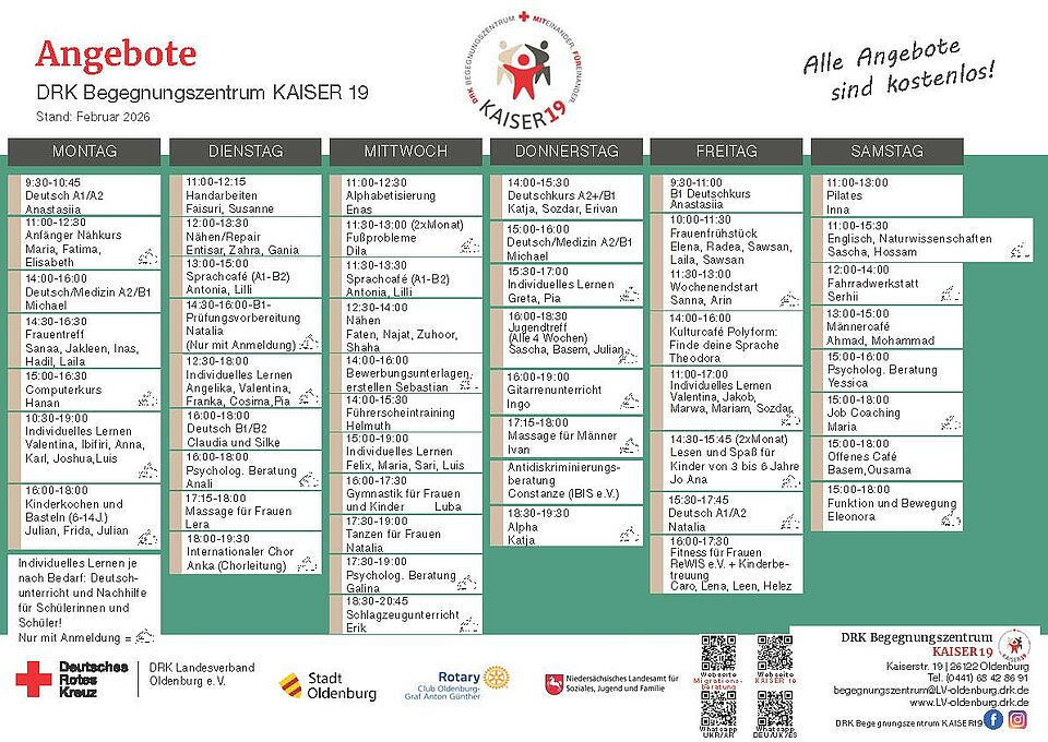 Hier finden Sie eine Übersicht über die Veranstaltungen und Angebote in unserem DRK Begegnungszentrum KAISER 19.