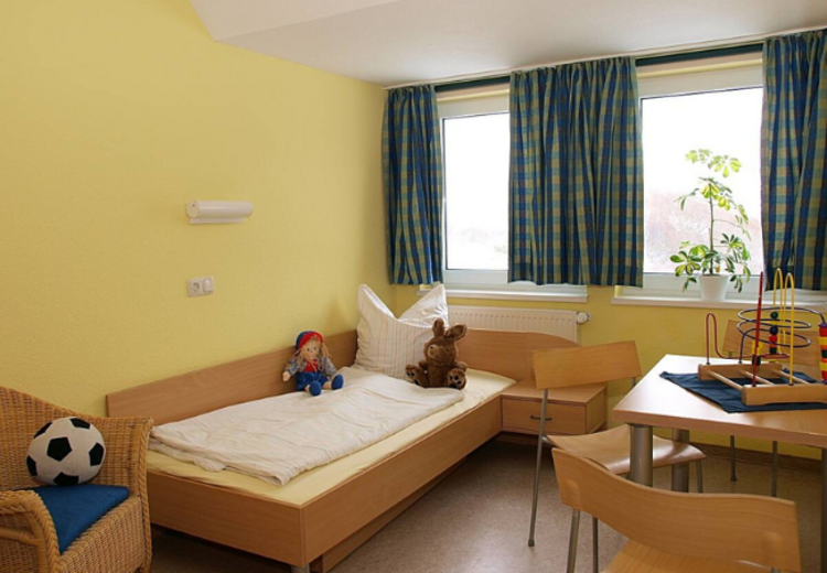 Im angrenzenden Nebengebäude befinden sich drei Gruppenräume für die Kinderbetreuung, die während der Therapiezeiten der Mütter/Väter angeboten wird.