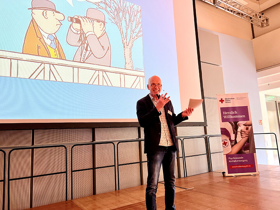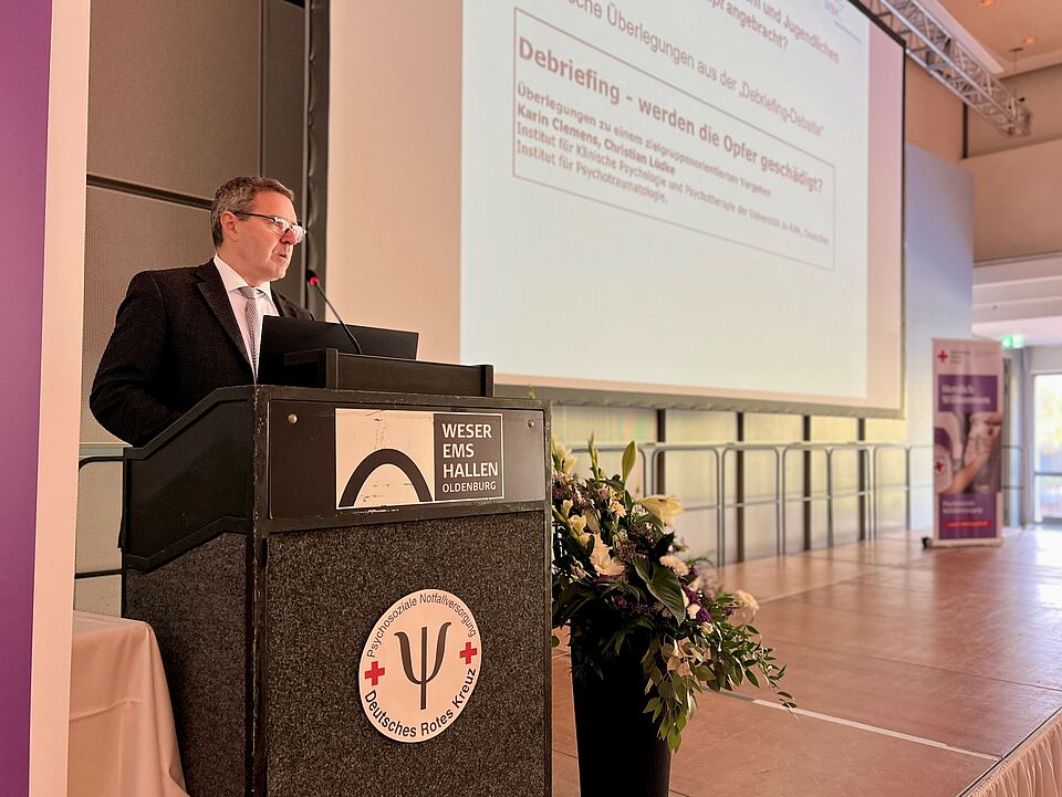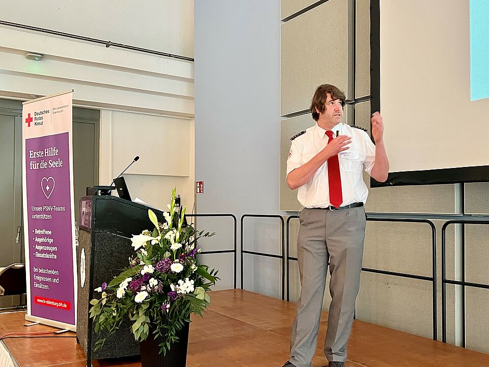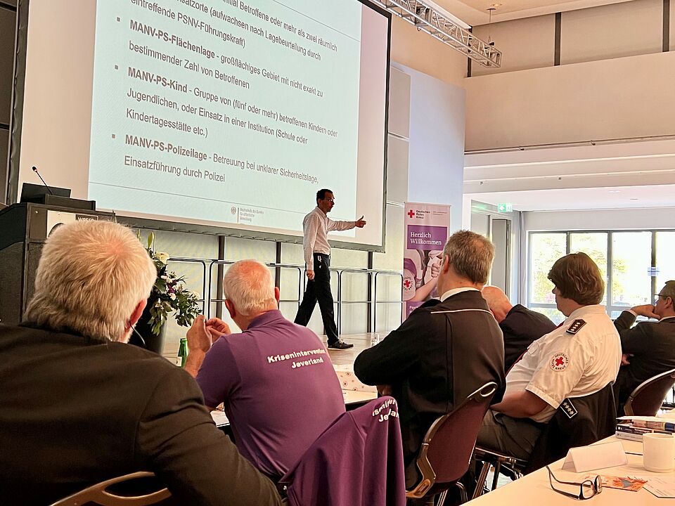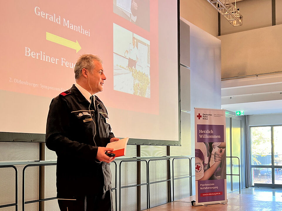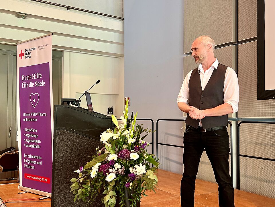Am heutigen Samstag, den 15.10.2022 lud der DRK-Landesverband Oldenburg e.V. Fach- und Führungskräfte sowie Multiplikatoren und Interessierte zum 2. Mal zu einem PSNV-Symposium nach Oldenburg ein, um über die Rolle und fortschreitende Bedeutung der Psychosozialen Notfallversorgung in und nach Notfall-Einsätzen in Deutschland zu sprechen. Unter der Überschrift „Aus der Praxis – für die Praxis“ gaben Fachreferenten aus unterschiedlichen Organisationen und Institutionen einen fundierten Einblick in die PSNV-Arbeit von gestern, heute und morgen. Dabei wurden auch aktuelle Ereignisse wie der Einsatz in der Hochwasserkatastrophe in Rheinland-Pfalz im Sommer 2021 beleuchtet. „Wir alle haben noch die dramatischen Bilder der Flutkatastrophe im Ahrtal vor Augen. In diesen Situationen leistet die Krisenintervention und Notfallseelsorge eine ambulante, kurzfristige Hilfestellung, um die Betroffenen in der Akutphase aufzufangen, zu stabilisieren und einer Traumafolgestörung vorzubeugen“, sagte Helmut Gels, Präsident des DRK-Landesverbandes Oldenburg e.V.
