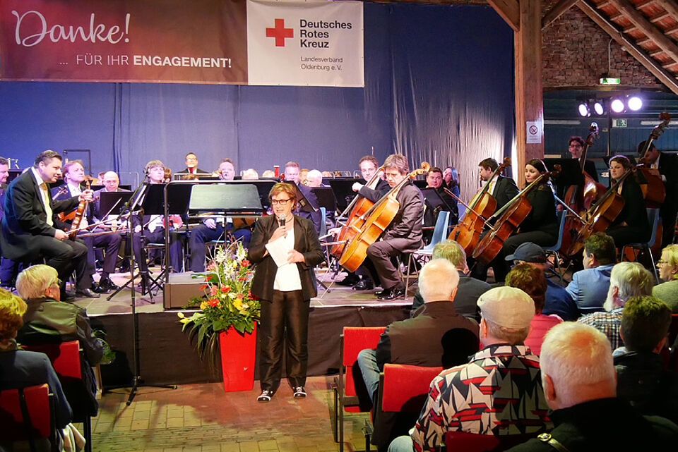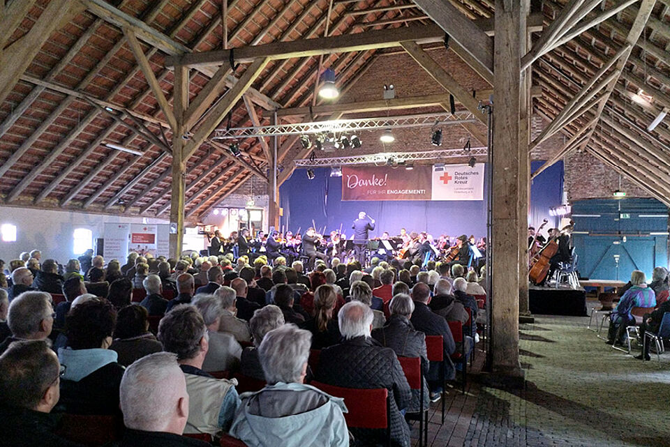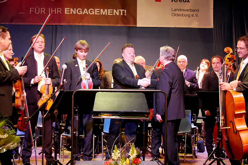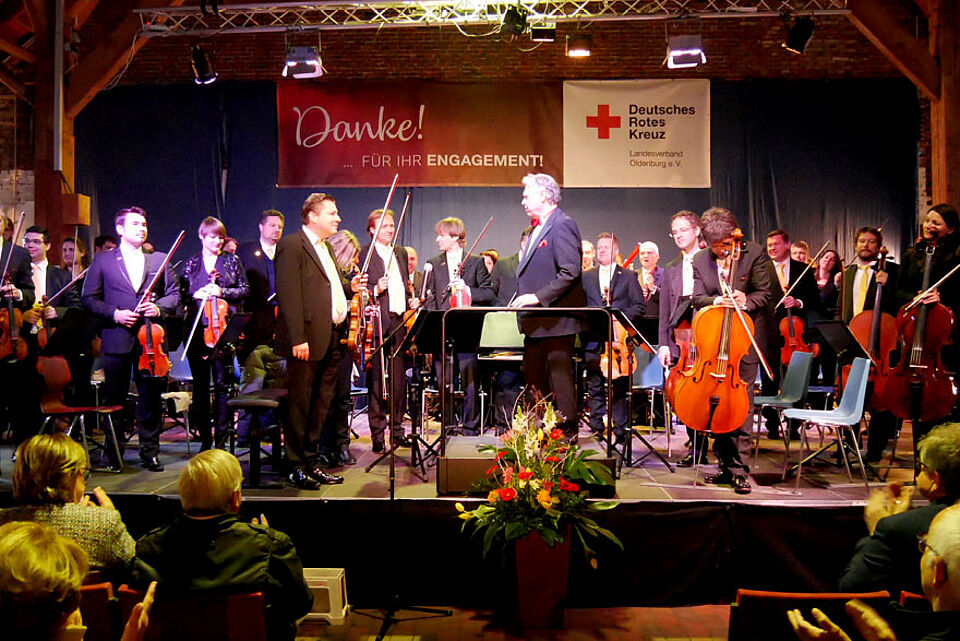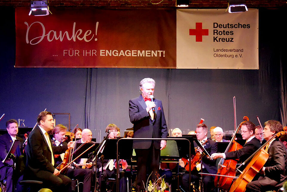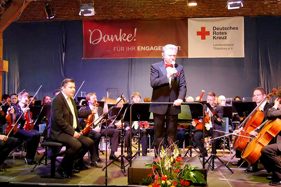Am Wochenende hatte der DRK Landesverband Oldenburg langjährige Blutspenderinnen und Blutspender zu Sommerkonzerten nach Zetel und Bad Zwischenahn eingeladen. Dirigiert und moderiert von Dieter Holzapfel (Landesgeschäftsführer des DRK Landesverbandes Oldenburg) spielte das international besetzte Ensemble der Würth Philharmoniker ein anspruchsvolles und abwechslungsreiches Programm, unter anderem mit Franz Schuberts Ouvertüre „Rosamunde“ und dem Walzer „Spährenklänge“ von Josef Strauss.