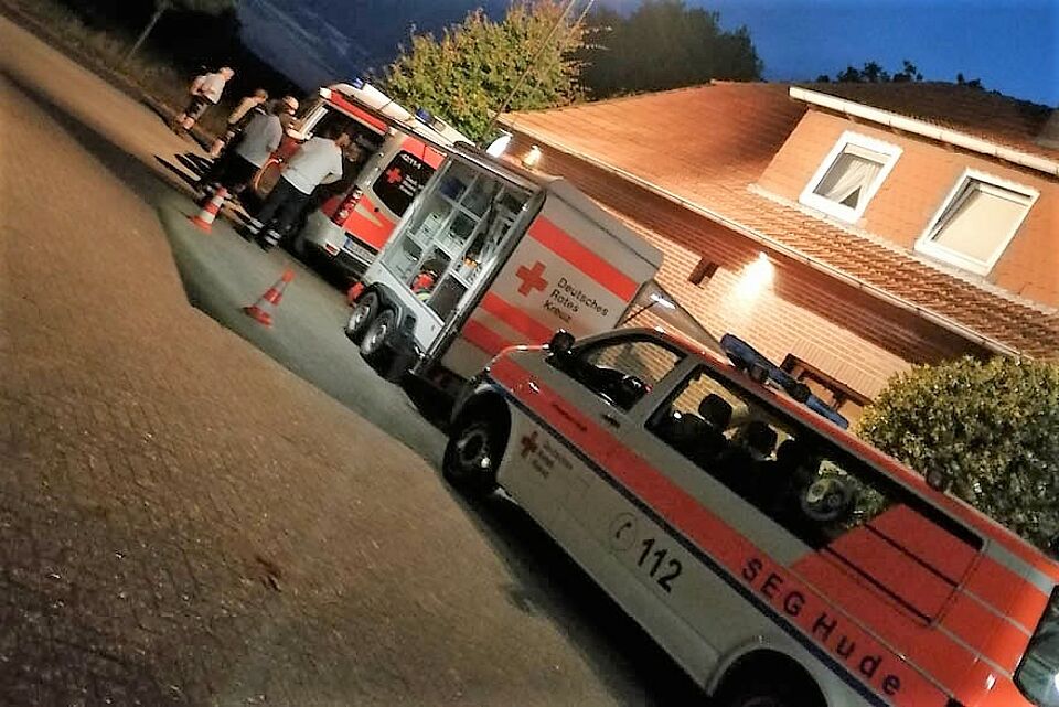 Hude. Am späten Nachmittag des 01.08.2019 führte ein Bombenfund bei Bauarbeiten an der Bremer Straße zu einem Großeinsatz der Rettungskräfte im Landkreis Oldenburg. Hierfür wurden auch die Schnelleinsatzgruppen des Deutschen Roten Kreuzes (DRK) aus Hude und Ganderkesee alarmiert.