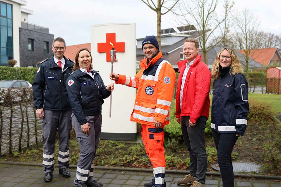 Die Übergabe der Fackel fand in der Landesgeschäftsstelle des DRK-Landesverbandes Oldenburg e.V. statt. Johannes Neumann, Landesleiter der Wasserwacht nahm das Licht der Hoffnung von einer Delegation des DRK-Landesverbandes Bremen e.V. entgegen. Im Anschluss brachte die Landesgeschäftsführerin Daniela-Florina Udrea die Fackel nach Sande zu der Oldenburgischen Schwesternschaft vom Roten Kreuz e.V., wo Oberin Yvonne Janßen gemeinsam mit ihren Kolleginnen und Kollegen die brennende Fackel in Empfang nahmen.