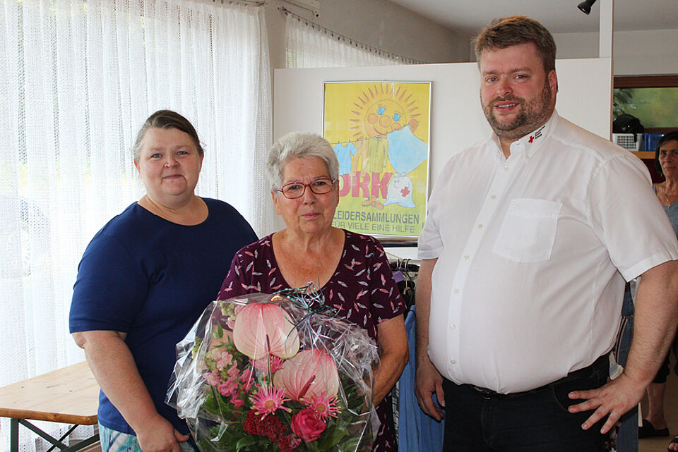 Kreisverbandvorstand Michael Venzke (DRK Kreisverband Oldenburg-Land e.V.) bedankte sich bei der langjährigen Leitern der Kleiderkammer und lobt, dass so ein Engagement heute kaum noch vorkomme. Umso mehr ist man Ehrenamtlichen wie Rosemarie Götz für ihr langes Engagement und ihre Mitgestaltung des Verbandes dankbar.