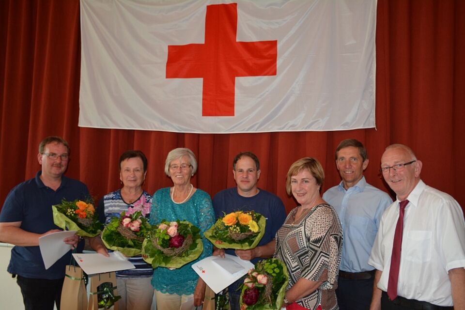 Ganz wesentlich getragen wird die Arbeit des DRK von über 700 ehrenamtlichen Helferinnen und Helfern. Einige sind schon sehr lange dabei, so dass Kreisvorsitzender Karl-Heinz Röben einige Ehrungen vornehmen konnte. Mit Blumenstrauß und Präsent bedankte er sich für 45 Jahre Sozialarbeit bei Lotte Bohlken aus Schwei. Ausgezeichnet wurden Olaf Stieglitz aus Brake (35 Dienstjahre), Herlint Looschen aus Elsfleth und Tom Tantzen aus Oldenbrok (beide 25 Jahre). Nachgeholt werden die Ehrungen für Irmgard Pauka für 30 Jahre Sozialarbeit und für Marga Höpken, beide Jaderberg, für 25 Jahre.