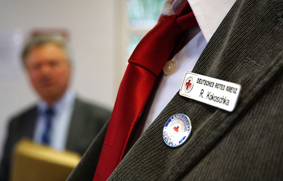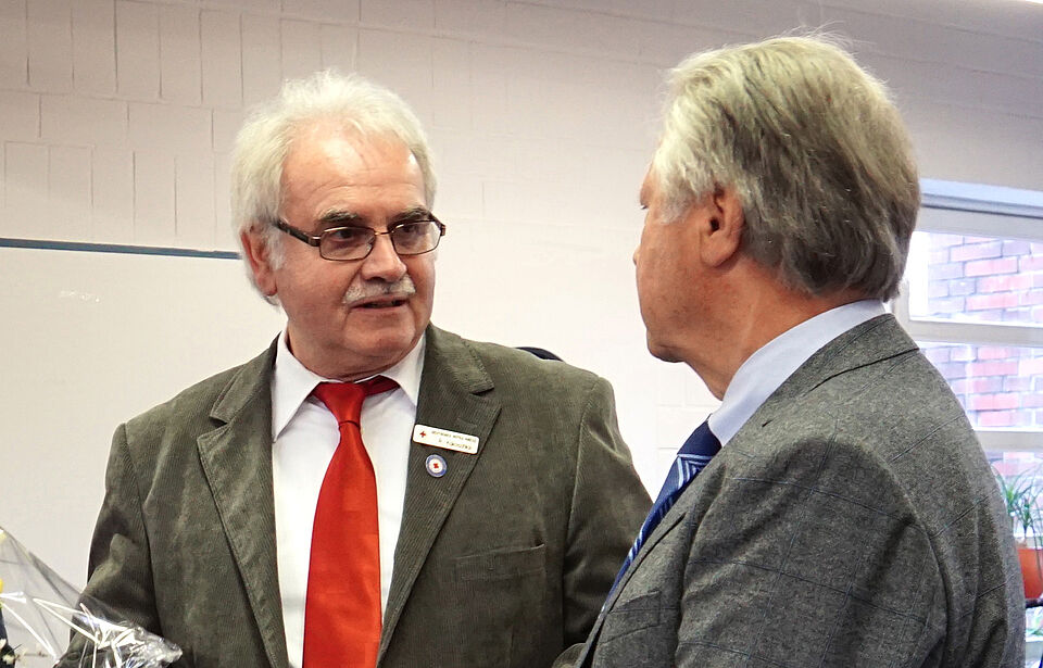 "Seit über 25 Jahren leisten Sie herausragende Verdienste für das Deutsche Rote Kreuz. Dafür gilt es Ihnen zu danken!" Mit diesen Worten bedankte sich Dieter Holzapfel, Präsident des DRK-Landesverbandes Oldenburg, bei Rainer Kokoschka und überreichte ihm die Ehrennadel des DRK-Landesverbandes Oldenburg. Angefangen im Jahre 1990 als Justitiar, setzt Herr Kokoschka sich mittlerweile seit 2012 als Vorsitzender des Kreisverbandes mit großem Engagement für alle Rotkreuzmitglieder ein.