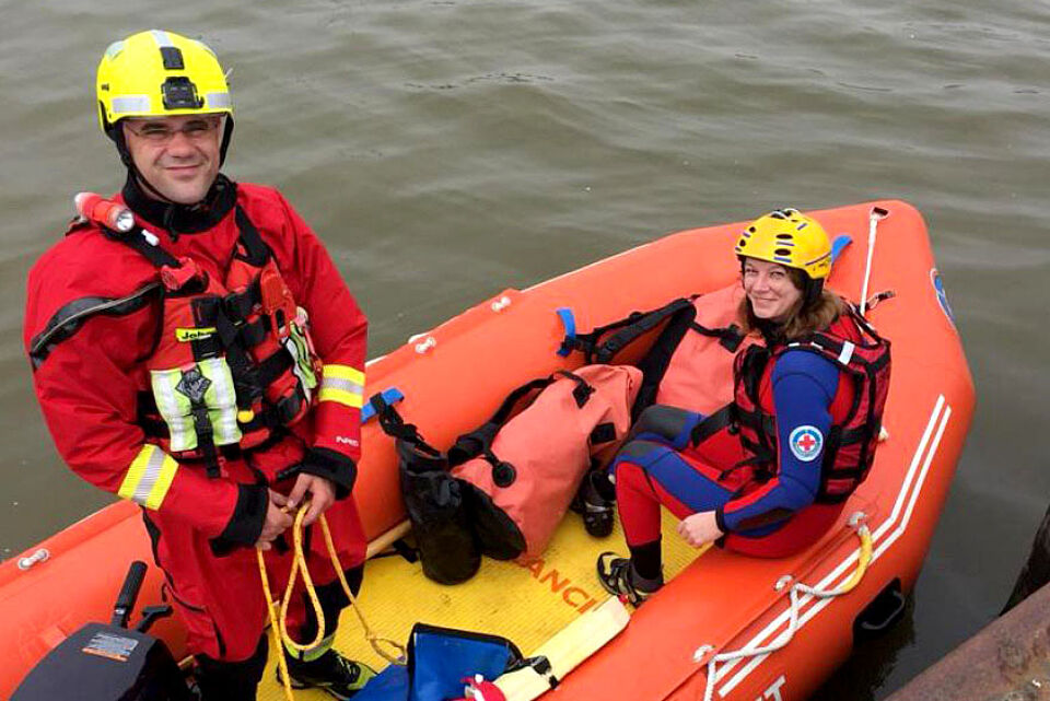 Dazu lädt der Landesleiter Wasserwacht die Geschäftsführung des DRK Landesverbandes Oldenburg ein. In diesem Jahr hat sich Daniela Udrea, die stellvertretende Geschäftsführerin des Landesverbandes, mit ihm aufs Meer gewagt. Gut eingepackt im Neoprenanzug überführten sie gemeinsam das Rettungsboot zur Insel und setzten den Startschuss für eine erfolgreiche Wachsaison 2019.