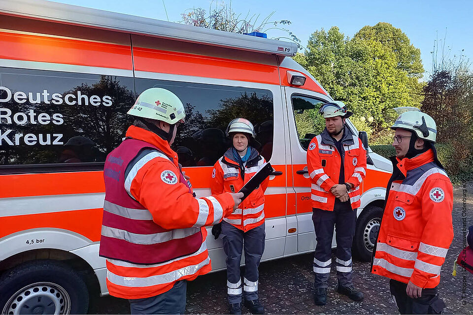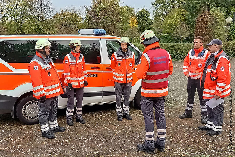 Über 3 Wochenenden lief die Qualifikation der 12 ehrenamtlichen Teilnehmerinnen und Teilnehmer. Nachdem das theoretische Wissen bereits am 23. Oktober überprüft wurde, endete am Sonntag, den 06. November, der Lehrgang mit einer praktischen Abschlussprüfung. Als neue Gruppenführer können die Teilnehmenden fortan Gruppen im Einsatz der DRK-Einsatzformationen führen und Einsatzaufträge selbständig abarbeiten.