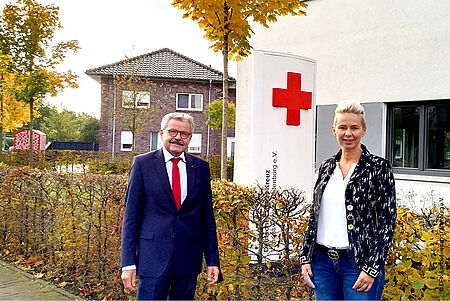 Helmut Gels, der Präsident des DRK Landesverbandes Oldenburg e.V. spricht mit der Bundestagsabgeordneten Silvia Breher (CDU) über die besondere Belastung der Mutter-/Vater-Kind-Kureinrichtungen in der Corona-Pandemie und die Zukunft der…