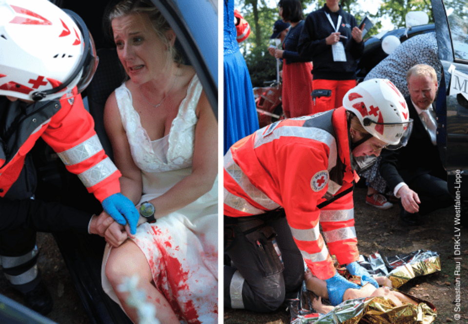 Neben den Erste-Hilfe- und Rettungssimulationen beinhaltete der Wettbewerb auch eine theoretische Station, in der Fragen zu Themen wie Katastrophenschutz, Blutspendeorganisation, internationaler humanitärer Hilfe und der Geschichte des DRK im Stil von ‚Quiz-Taxi‘ beantwortet werden mussten. Zudem wurde die psychosoziale Notfallversorgung (PSNV) in einige Aufgaben integriert, da das DRK zunehmend bei traumatischen Einsätzen, wie Naturkatastrophen oder Großunfällen, gefordert ist. Im Rahmen des Wettbewerbs musste die PSNV beim Autounfall angefordert werden, um die zahlreichen Hochzeitsgäste zu betreuen.