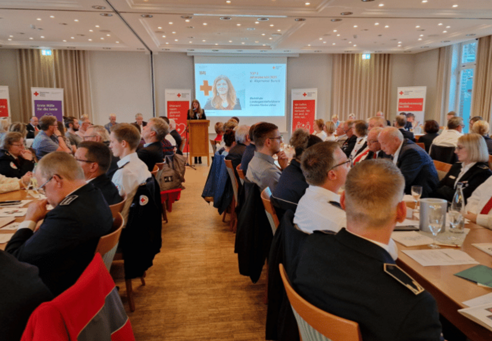 „Das Deutsche Rote Kreuz ist nah am Menschen. Das habe ich wieder bei den Besuchen in den Kreisverbänden erfahren. Angefangen bei der Betreuung der Kleinsten in den Kitas, weiter über das JRK bis hin zu der Arbeit in den Gemeinschaften. Sei es in den Bereitschaften, der Wohlfahrts-und Sozialarbeit oder in der Wasserwacht. Jeder, der möchte, findet beim Roten Kreuz seinen Platz“ fasste Landesgeschäftsführerin Daniela-Florina Udrea in ihrer Rede zusammen. „Dennoch stehen wir vor Herausforderungen wie dem demografischen Wandel, einem Rückgang der Fördermitglieder und Fachkräftemangel, insbesondere in der Pflege.“