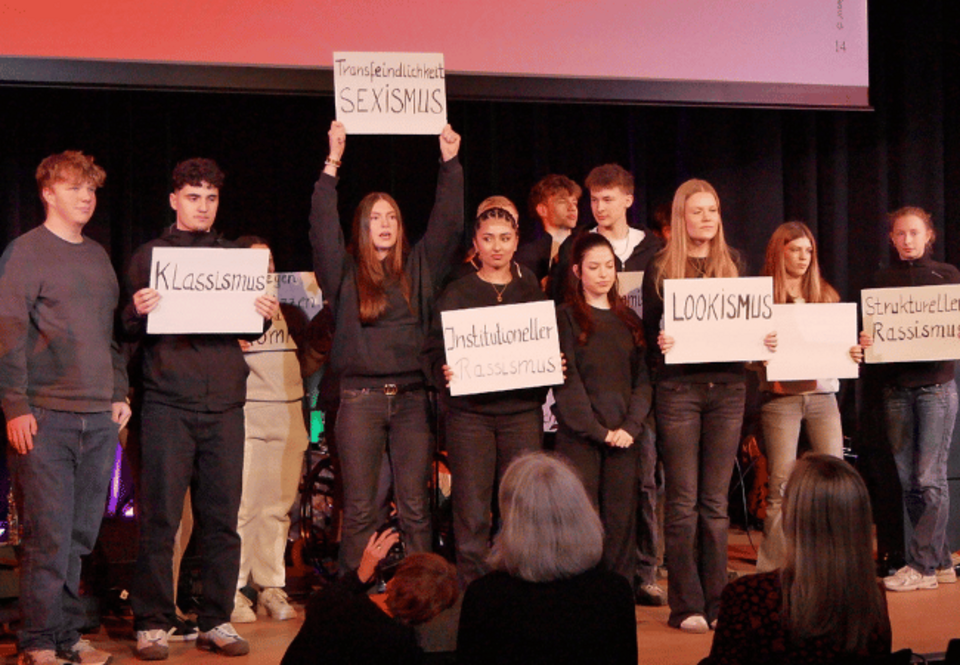 „Der Auftritt hat gezeigt, dass es möglich ist, Menschen für dieses Thema zu öffnen – auch wenn es oft schwer erscheint. In unserer gemeinsamen Arbeit wurde deutlich, wie komplex Rassismus ist und wie herausfordernd es sein kann, ihn so zu behandeln, dass er berührt, ohne abzuschrecken. Die Schülerinnen und Schüler haben das erneut geschafft: Sie sind als Sprachrohr für Menschen, die von Rassismus betroffen sind, auf die Bühne gegangen – und die Menschen haben ihnen zugehört.“ (Frida Thompson, Bundesfreiwilligendienst KAISER 19)