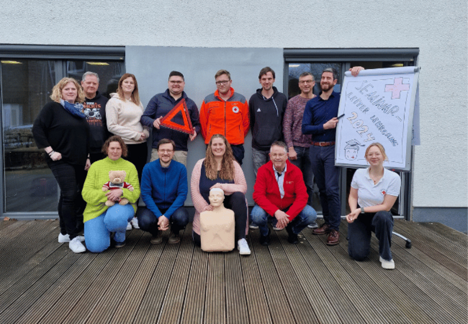 Unterstützt wurden sie dabei von einem Dozententeam rund um die Kursleiterin Anna von Häfen. Die Teilnehmenden haben sich intensiv und praxisorientiert mit den fachlichen Inhalten und vor allem der Didaktik im Bereich der Ersten Hilfe auseinandergesetzt. Vor Beginn des Lehrgangs hatten sie dafür bereits einen großen Grundstein durch eine notfallmedizinische Qualifikation sowie eine gründliche Einarbeitung in den Erste-Hilfe-Bereich in ihren Kreisverbänden gelegt.