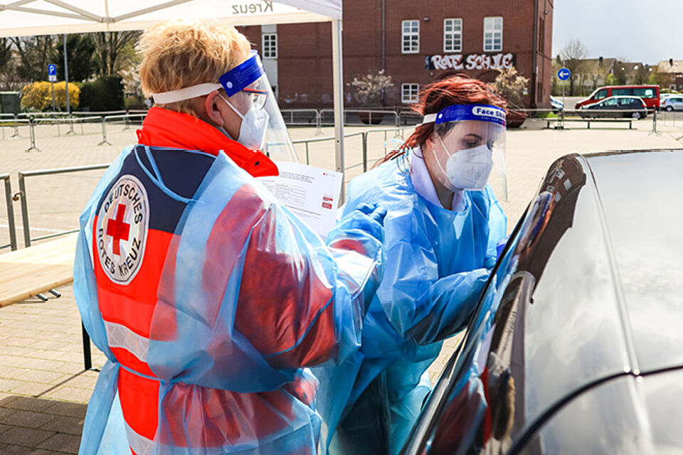 Auch Fußgänger können sich beim Vorbeigehen testen lassen. In Summe dauert der Vorgang nicht länger als drei Minuten – von der Kontrolle der Personalien über den Abstrich bis hin zum Weiterfahren bzw. Weitergehen. „Die Anmeldung läuft online über die Websitehttps://cloppenburg.drk-testzentrum.de. Hier kann man sich einen Termin buchen. Was wir dann beim jeweiligen Testtermin benötigen, ist der ausgefüllte Erfassungsbogen. Nach dem Test wird das Ergebnis frühestens nach 15 Minuten direkt auf die angegebene E-Mail-Adresse oder als SMS an die Frau bzw. den Mann gesendet – ohne vor Ort warten zu müssen“, informiert die DRK-Mitarbeiterin.