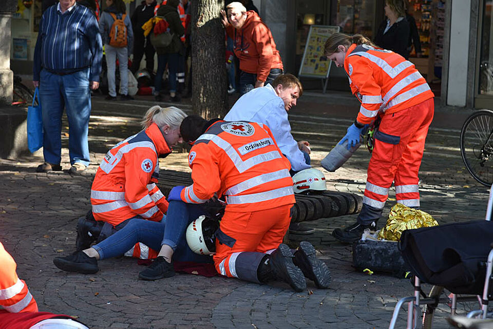 Inmitten von Darmstadt waren zuvor 15 teilnehmende Teams aus den DRK-Bereitschaften, der Bergwacht, der Wasserwacht und des Jugendrotkreuzes aus dem gesamten Bundesgebiet angetreten, um das beste Retter-Team zu küren.