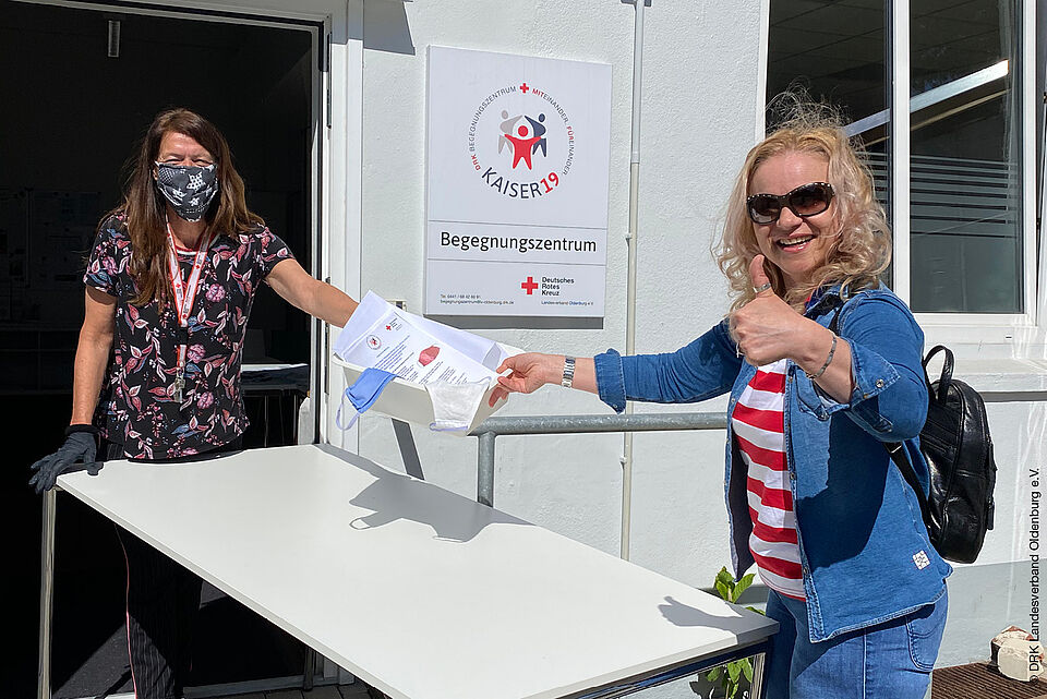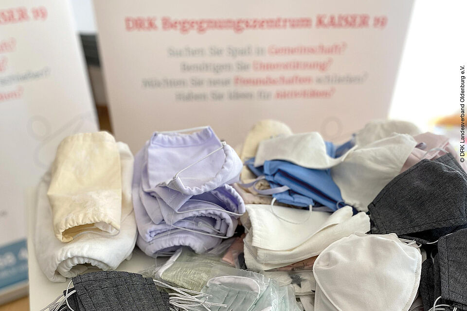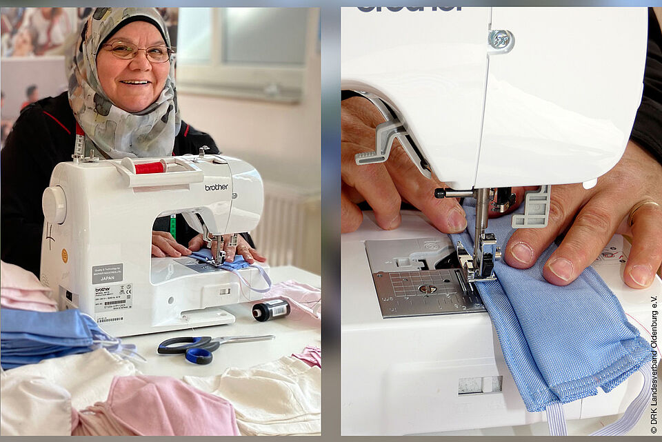 Das DRK Begegnungszentrum versorgt sie mit Material zum Schneidern der Masken, wie z.B. Baumwollstoffen, Vlies, Draht für die Bügel und Nähgarn. Auch Nähmaschinen stellt das DRK den Ehrenamtlichen für die Zeit der Kontaktbeschränkungen zur Verfügung, wenn sie nicht, wie einige der passionierten Hobbyschneider, eine eigene Zuhause haben. Die Stadt Oldenburg hatte dem DRK Begegnungszentrum KAISER 19 für seine Nähkurse zur Eröffnung die Nähmaschinen als Dauerleihgabe zur Verfügung gestellt. Durch die Masken-Schneiderei werden sie in der Corona-Zeit weiterhin sinnvoll genutzt.