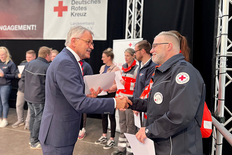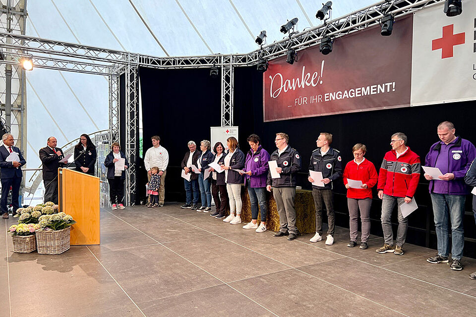 Bad Zwischenahn | Nach zwei außergewöhnlichen Jahren, in denen sich beinahe alles um „Corona“ und die Bewältigung der Pandemie drehte, hat der DRK-Landesverband Oldenburg e.V. heute ehrenamtliche Mitarbeiterinnen und Mitarbeiter, die sich in den zurückliegenden beiden Jahren in besonderer Weise engagiert haben, in feierlichem Rahmen im Park der Gärten in Bad Zwischenahn geehrt. „Sie haben Fürsorge und Solidarität gezeigt und trotz erschwerter Rahmenbedingungen Beachtliches für unsere Gesellschaft geleistet. Dafür gebührt Ihnen mein Respekt und meine Anerkennung“, sagte Helmut Gels, Präsident des DRK-Landesverbandes Oldenburg e.V. in seiner Ansprache an die rund 200 geladenen Rotkreuzlerinnen und Rotkreuzler.