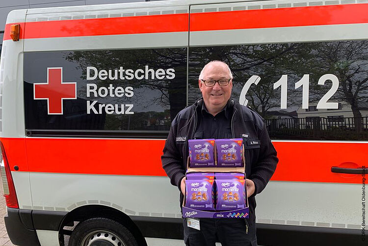Bereits in unserem letzten Newsflash haben wir über die tolle Schokoladenspende von Milka für unsere Einsatzkräfte berichtet. Und was macht unseren Rotkreuzlerinnen und Rotkreuzlern noch mehr Spaß als Schokolade zu essen? Natürlich die Schokolade mit anderen zu teilen!