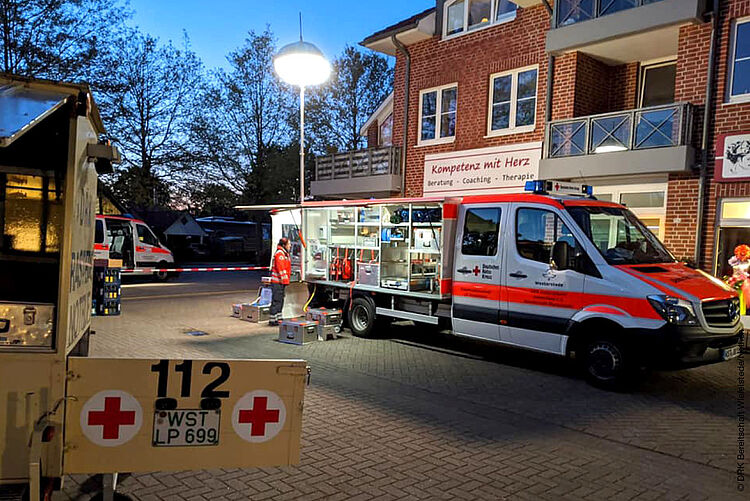 Am 6. Mai unterstützten unsere ehrenamtlichen Helferinnen und Helfer die Einsatzkräfte der Feuerwehr bei einem Großeinsatz. In Metjendorf brannten zwei Lagerhallen eines Entsorgungsbetriebs. Während des knapp 12 stündigen Einsatzes baute die Einheit der DRK Bereitschaft Wiefelstede / Nethen ein Zelt auf, das als Betreuungslager genutzt wurde und stellte am Abend zusätzlich einen Beleuchtungsballon und eine Feldheizung auf. Zusammen mit Rotkreuzlerinnen und Rotkreuzlern aus weiteren Bereitschaften kümmerten sie sich auch um die Verpflegung aller Einsatzkräfte.