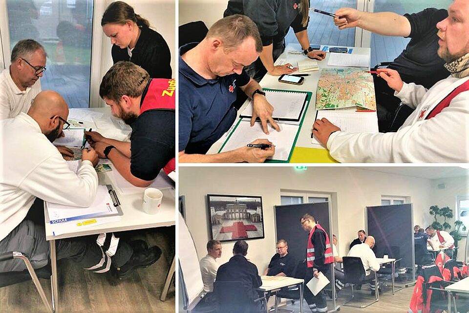 Das Seminarprogramm ist insgesamt eine bunte Mischung aus Theorie und Praxis. Theoretische und praktische Aufgaben wechseln sich ab mit fachlichen Vorträgen. "In den ersten beiden Seminarblöcken haben wir als Szenario eine Massenkarambolage auf der A28 bei Nebel und Glatteis behandelt", erklärt Thomas Hoppe, Referent des DRK Landesverbandes Oldenburg e.V., "dieser Teil wurde mit einer theoretischen Prüfung abgeschlossen." Am letzten Wochenende ging man dann zum praktischen Teil über, mit einem Übungsszenario am Samstag und der praktischen Prüfung am Sonntag.