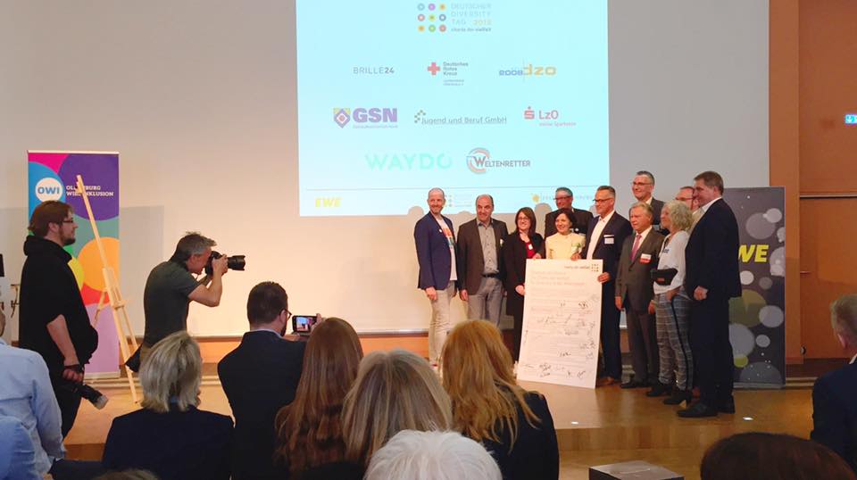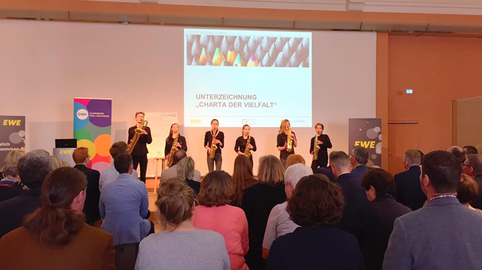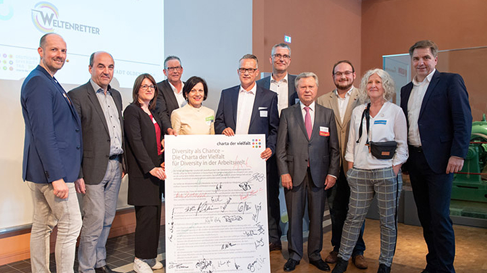 Am gestrigen deutschen Diversity Day 2019 begrüßte der Oberbürgermeister der Stadt Oldenburg, Jürgen Krogmann, sieben namenhafte Oldenburger Firmen in feierlichem Rahmen im EWE Forum "Alte Fleiwa" - die Landessparkasse zu Oldenburg, den DRK Landesverband Oldenburg, Brille24, Gebäudesicherheit Nord GSN, Jugend und Beruf GmbH sowie die Firmen Waydo, Weltenretter und dzo. Sie alle unterzeichneten die Charta der Vielfalt.