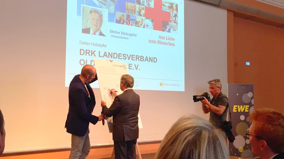 Dieter Holzapfel, Ehrenpräsident des DRK Landesverband Oldenburg e.V. unterschrieb symbolisch mit rotem Stift für das Deutsches Rotes Kreuz in Oldenburg und schloss mit dem schönen Statement „Vielfalt stärkt das Miteinander und ist der Schlüssel zu Toleranz, Akzeptanz und Menschlichkeit - hier und auf der ganzen Welt.“