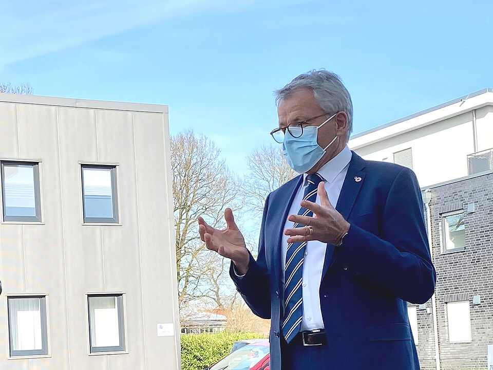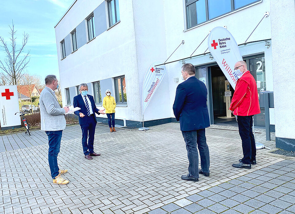 Zu einem gemeinsamen Pressetermin luden heute der DRK Landesverband Oldenburg e.V. und der DRK Kreisverband Oldenburg-Stadt e.V. in die Landesgeschäftsstelle in der Maria-von-Jever-Straße 2 ein und stellten das am Montag eröffnete DRK Testzentrum im Stadtteil Oldenburg-Etzhorn vor. Gesprächspartner waren Helmut Gels (Präsident des DRK Landesverbandes Oldenburg), Daniela-Florina Udrea (Geschäftsführerin des DRK Landesverbandes Oldenburg e.V.) sowie Birger Holz (1. Vorsitzender des Kreisverbandes Oldenburg-Stadt e.V.) und Mathias Melchior (Geschäftsführer des Kreisverbandes Oldenburg-Stadt e.V.).