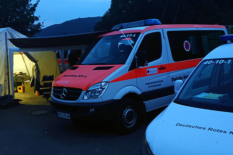 „Unsere Führungsgruppe koordinierte die sanitätsdienstliche Absicherung der Bevölkerung, der Einsatzkräfte und der freiwilligen Helfer“, berichtet Patrick Bloem, Abteilungsführer der MTF06. Die Menschen im Schadensgebiet haben sich selber schnell organisiert, und viele Ehrenamtliche helfen bei den Aufräumarbeiten. „Da kommt es auch einmal zu kleineren Verletzungen“, sagt Christoph Keller, ärztlicher Leiter der bestellten MTF06.