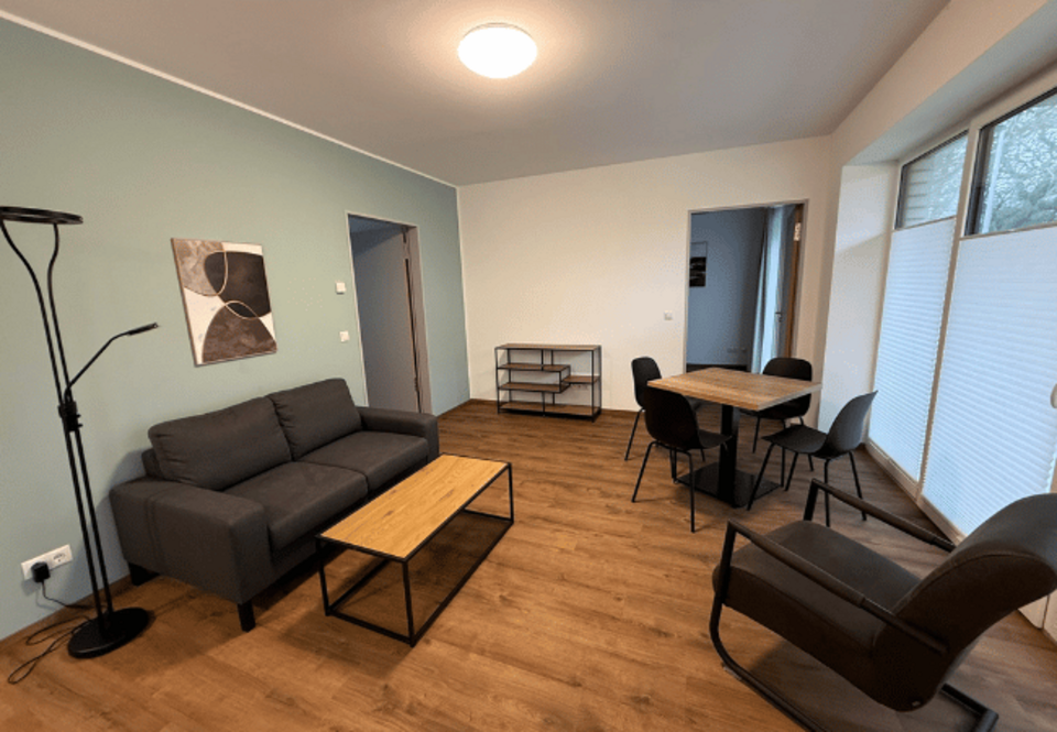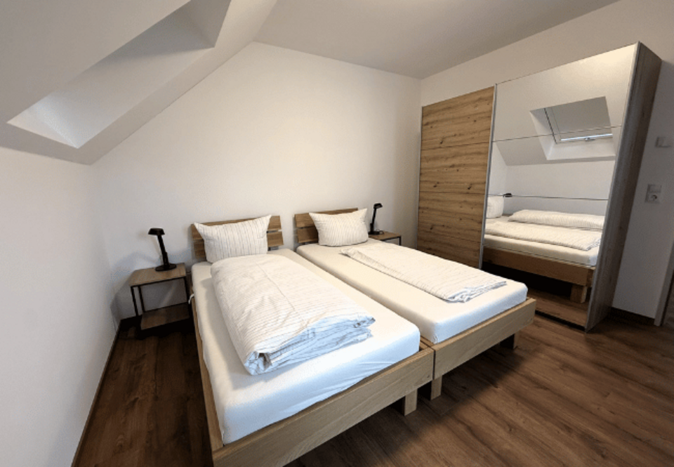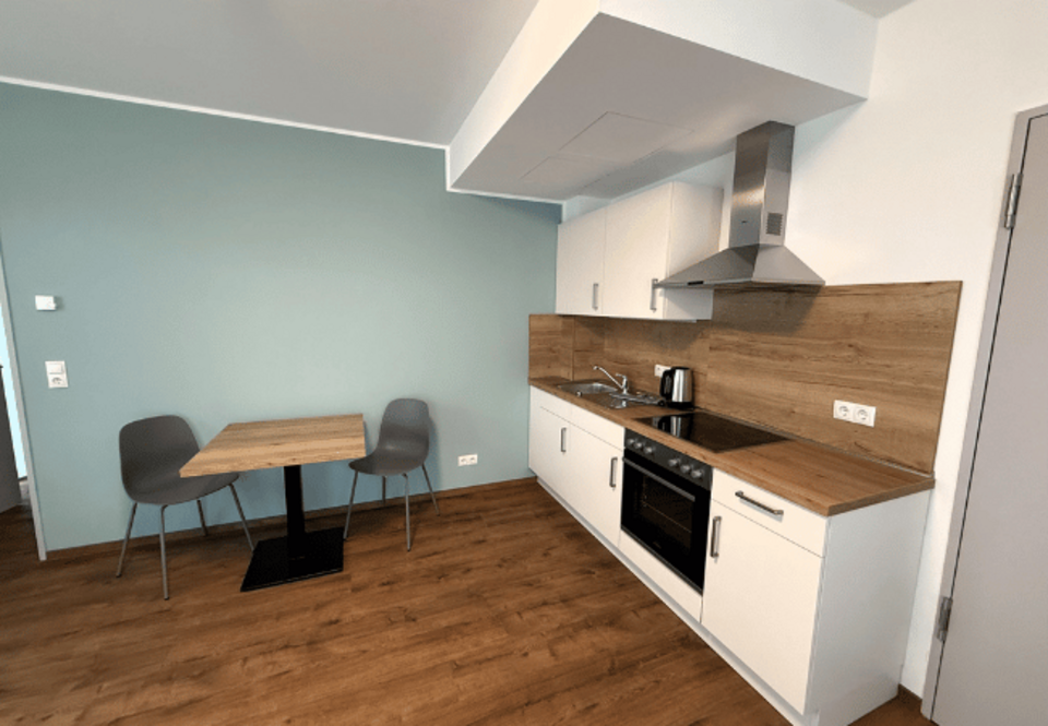 Der Neubau umfasst insgesamt 16 Wohnungen, die als moderne Apartments mit ein bis zwei Schlafzimmern geplant und realisiert wurden. Jede Wohnung verfügt über einen Wohnbereich mit integrierter Küche, ein Badezimmer sowie einen Balkon oder eine Terrasse.