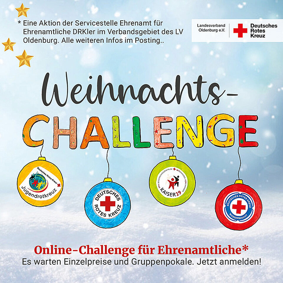 Meldet Euch zur Online-Weihnachtschallenge an und stellt Euer Rotkreuzwissen und Eure Kreativität beim Lösen von vier Wochenaufgaben unter Beweis. Der Wettbewerb bietet Euch die Möglichkeit, trotz Kontaktbeschränkungen und strengen Hygienevorschriften, weiterhin vernetzt zu bleiben.