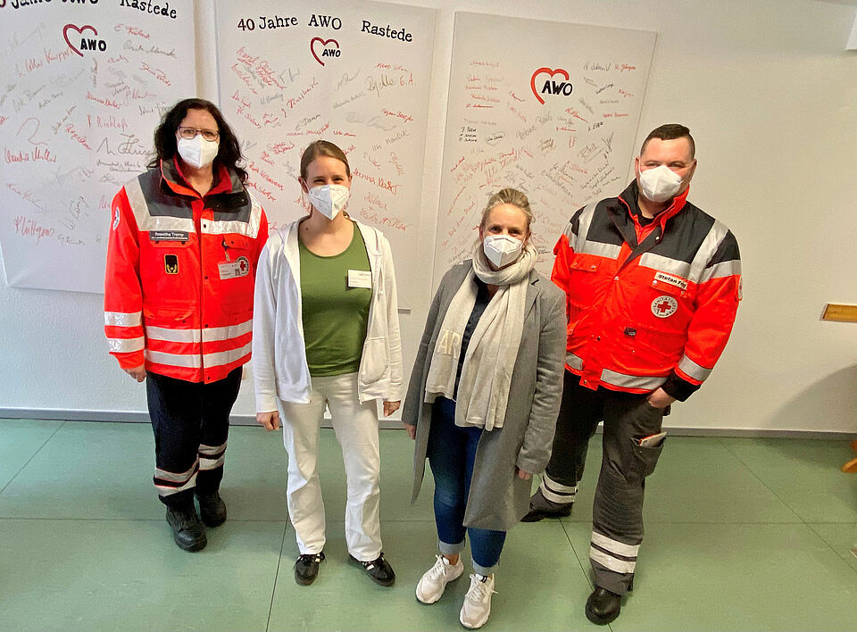 Unter der Leitung von Jared Becker, dem Landesbereitschaftsleiter des DRK LV Oldenburg e.V. (hier in Funktion des Kreisbereitschaftsleiters des DRK KV Ammerland e.V.) und Lars Hanekamp, dem stv. Katastrophenschutz-Beauftragten des DRK KV Ammerland e.V. fahren derzeit zwei mobile DRK-Impfteams in Pflege- und Seniorenheime und impfen Bewohner und Personal gegen COVID19. Insgesamt gibt es für den Landkreis Ammerland vier Impfteams, von denen drei durch das DRK und eines durch die Johanniter Unfallhilfe gestellt werden.
