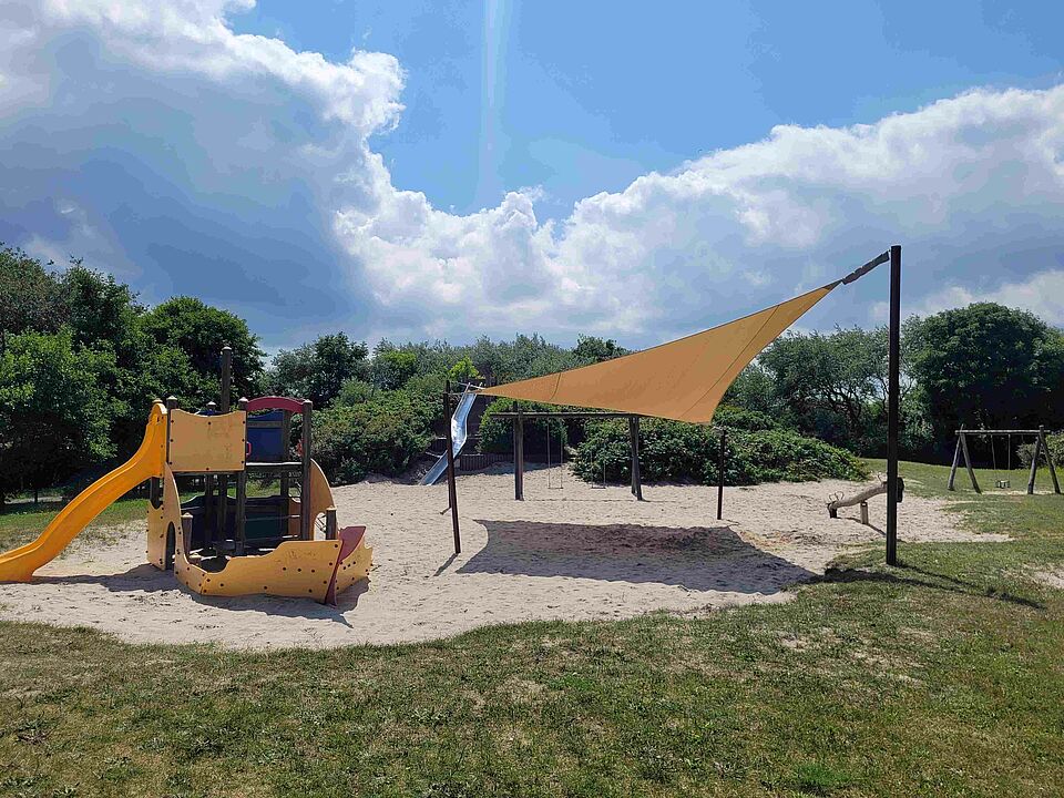 Neben dem Windschutz darf natürlich auch der Sonnenschutz nicht fehlen: Der Sandspielbereich wurde mit einem großen Sonnensegel ausgestattet, um unsere kleinen Gäste optimal vor Hitze und UV-Strahlung zu schützen.