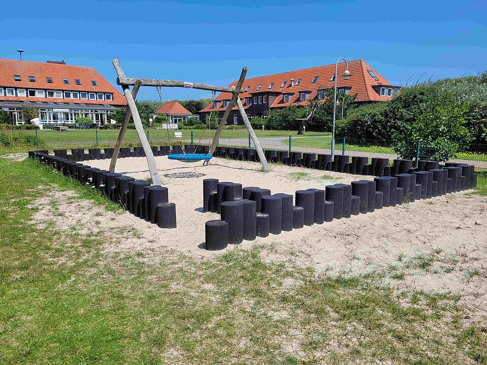 Wichtig ist hierbei der Schutz der Kinder. Investiert wurde aufgrund dessen in eine Umrandung der Nestschaukel mit Gummipalisaden, die nun verhindert, dass der Sand als Fallschutz vom Wind fortgetragen wird und sich dadurch die Fallhöhe unter der Schaukel für die Kinder erhöht. Darüber hinaus sorgt die Umrandung durch nur eine Eingangsöffnung dafür, dass Kinder nicht kreuz und quer über die Sandfläche und damit direkt in die Schaukel laufen, was den Schutz vor Unfällen und Verletzungen mindert.