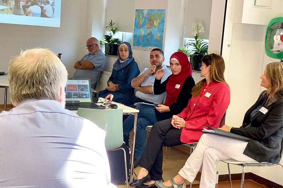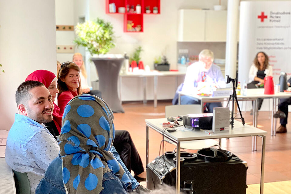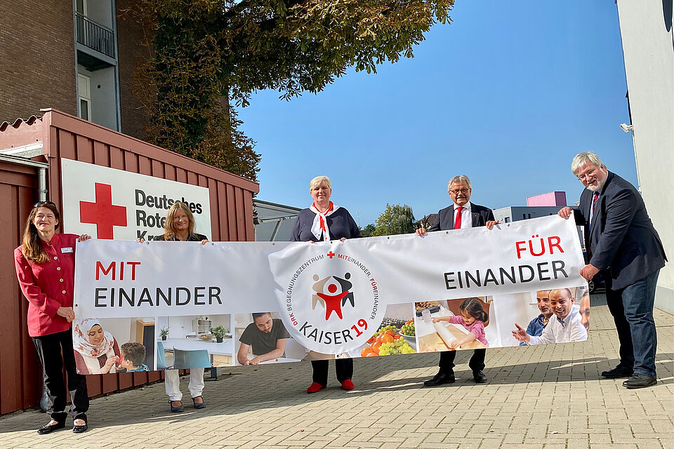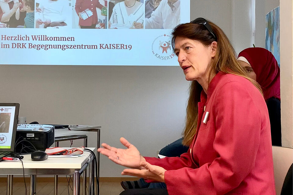 Kern der Arbeit ist die Unterstützung der Geflüchteten durch Ehrenamtliche. Seit Ende 2015 beteiligt sich das Deutsche Rote Kreuz an den Maßnahmen zur Unterstützung von Integrationsprojekten der Beauftragten der Bundesregierung für Migration, Flüchtlinge und Integration. Das von der Bundesregierung geförderte Projekt „Zusammen stark! – Ehrenamt“ stärkt die Koordinierung, Qualifizierung und Förderung ehrenamtlicher Integrationsarbeit. Hier vor Ort im DRK Begegnungszentrum KAISER 19 wird das Projekt konkret unter dem Titel „Ich bin dabei – ehrenamtliche Begleitung trifft Teilhabe von Geflüchteten“ erfolgreich umgesetzt. „Die z.T. muttersprachliche Unterstützung und Begleitung ist für die Zugewanderten eine große Hilfestellung“, so Beyer-Zamblé. Sie ebnet einen Zugang zum Erlernen der deutschen Sprache, zu Bildungs- und zu Arbeitsmarktperspektiven.