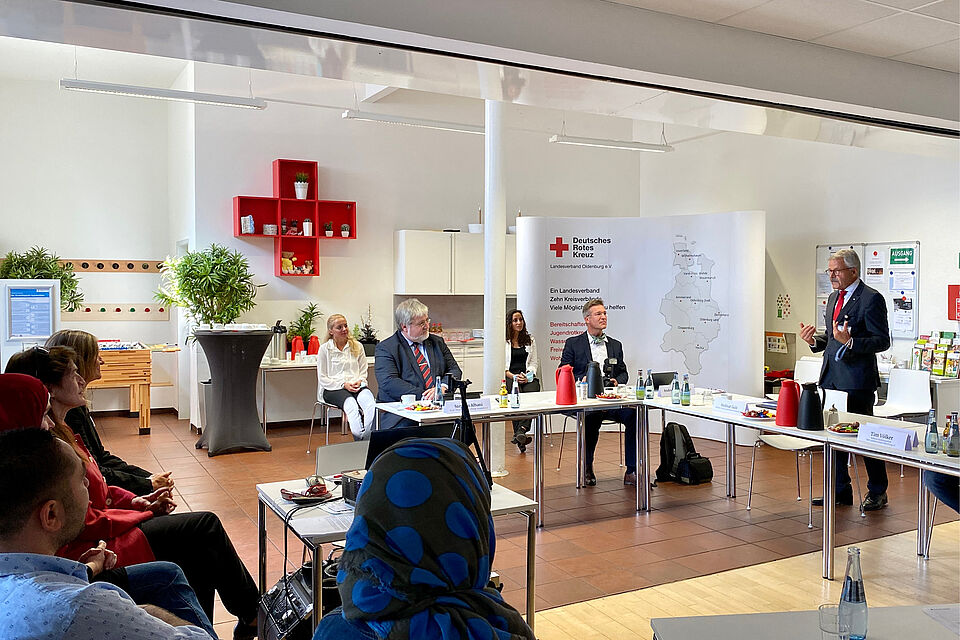 „Neben dem Beratungsangebot bieten wir den Menschen auch eine Orientierungs- und Austauschplattform“, erläutert Helmut Gels, Präsident des DRK Landesverbandes Oldenburg. „Wir freuen uns, dass durch den Kontakt zu unseren Ehrenamtlichen im Begegnungszentrum eine wichtige Brücke zwischen den Zugewanderten und der Aufnahmegesellschaft entsteht“, so Gels.