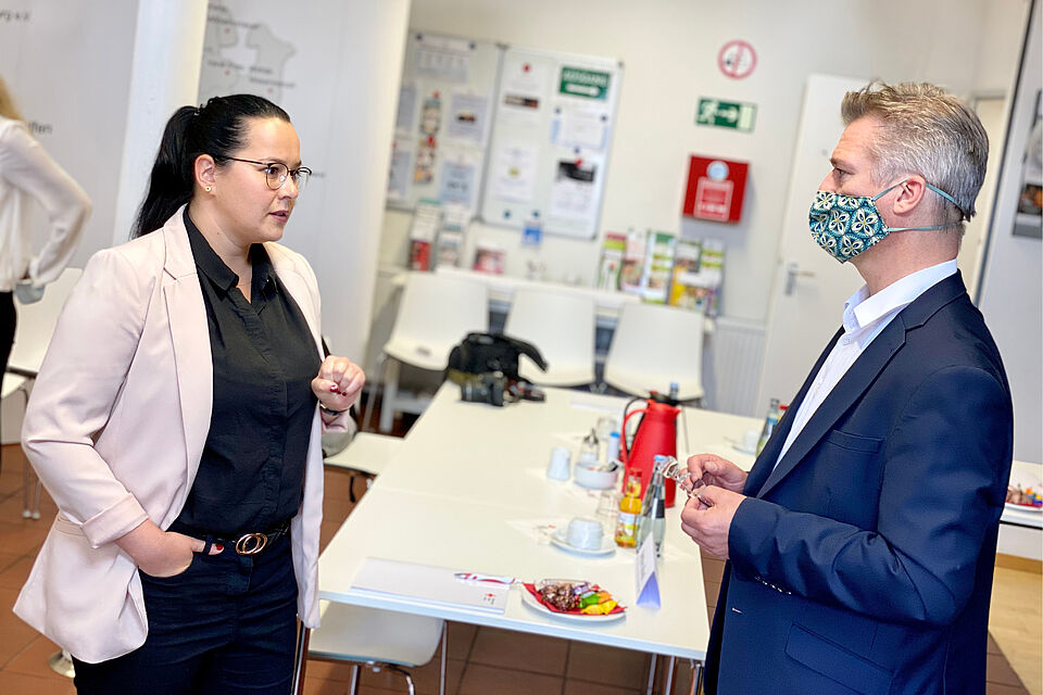 Daneben wurde auch über die aktuelle Situation und die Herausforderungen während der Corona-Pandemie gesprochen. Der aktuelle Landeshaushaltsplan weist für die nächsten Jahre im Bereich Migration erhebliche Kürzungen aus.