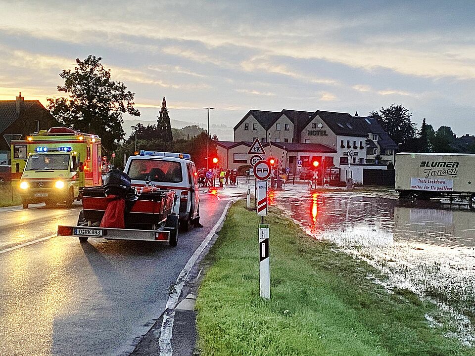Hochwasser, Überschwemmungen, evakuierte Wohnungen, umgestürzte Bäume: Schweres Unwetter führte in den vergangenen Tagen zu zahlreichen Einsätzen für das Deutsche Rote Kreuz in Nordrhein-Westfalen. Über 2.500 Kräfte des DRK waren seit Mittwoch alleine in Nordrhein-Westfalen im Einsatz, um evakuierte Personen zu betreuen, Menschen zu verpflegen, Sandsäcke zu transportieren und lokale Unterstützungsangebote ins Leben zu rufen. Kräfte der Wasserwachten sind mit Rettungsbooten im Einsatz.