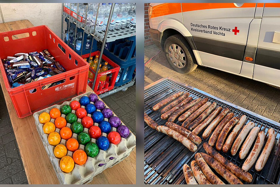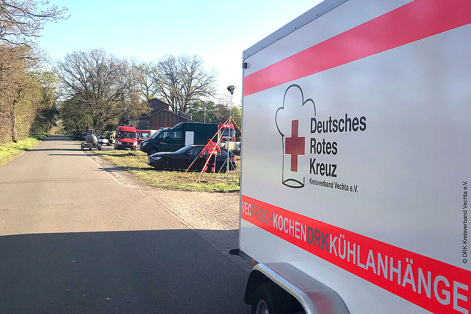Die beiden DRK-Bereitschaften aus Vechta und Oldenburg-Stadt waren an diesen Tagen vor Ort, um die Feuerwehr zu verpflegen. Die Löscharbeiten sind körperlich anstrengend. Die Rotkreuzlerinnen und Rotkreuzler stellten sicher, dass die Kolleginnen und Kollegen der Feuerwehr mit warmen Mahlzeiten, ausreichend Getränken und Snacks versorgt waren.